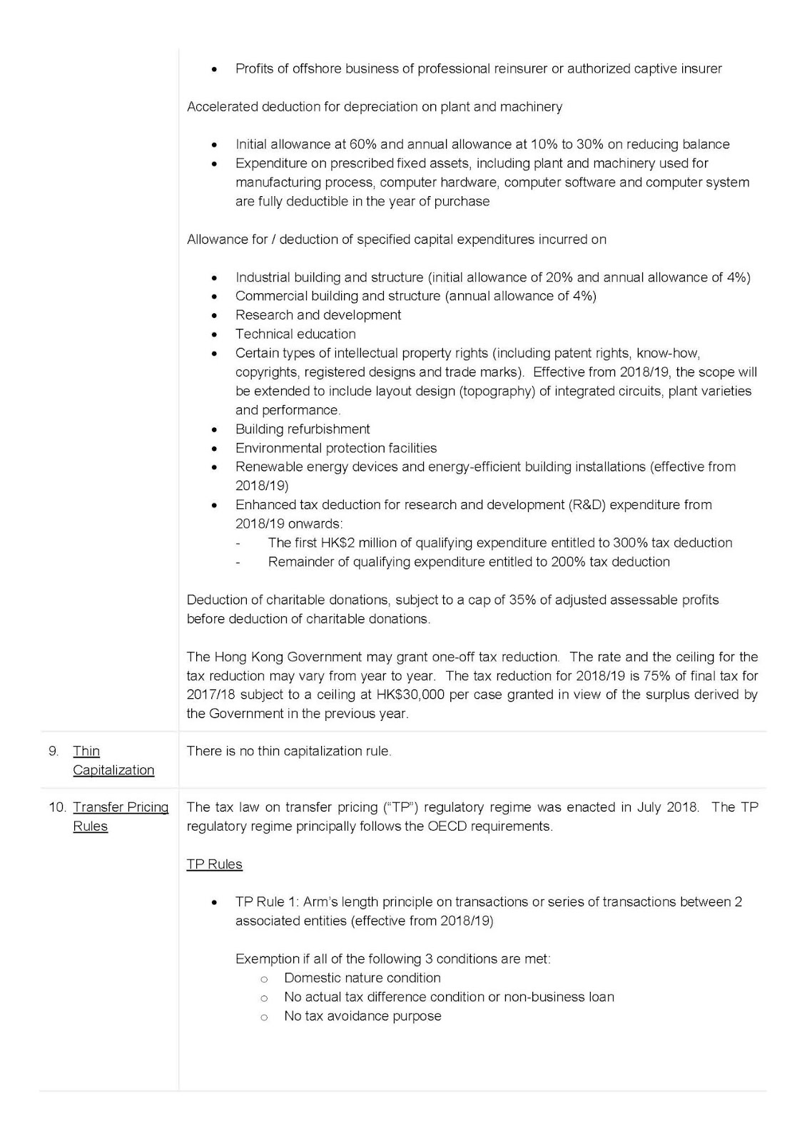 A super tax deduction scheme for research and development (R&D) expenditure was introduced on 2 November 2018. Under this new scheme, a 300 per cent tax deduction will be offered for the first HK$2 million of qualifying R&D expenditure and for expenditure in excess of HK$2 million, HK$6 million plus a 200 per cent tax deduction.