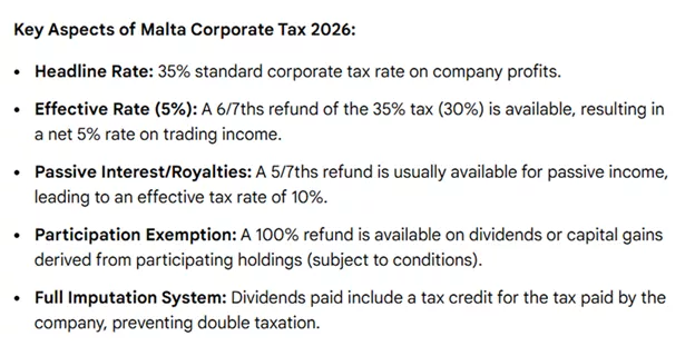 The tax treatment of dividend distributions from a Maltese company depends on factors including the nature of the underlying profits (e.g., trading vs. passive) and the residence status of the shareholder. A key practical risk for United States persons is a mismatch in classification: the analysis under Maltese corporate law must translate accurately into the relevant concepts for United States tax reporting, necessitating close coordination between Maltese and United States advisors.